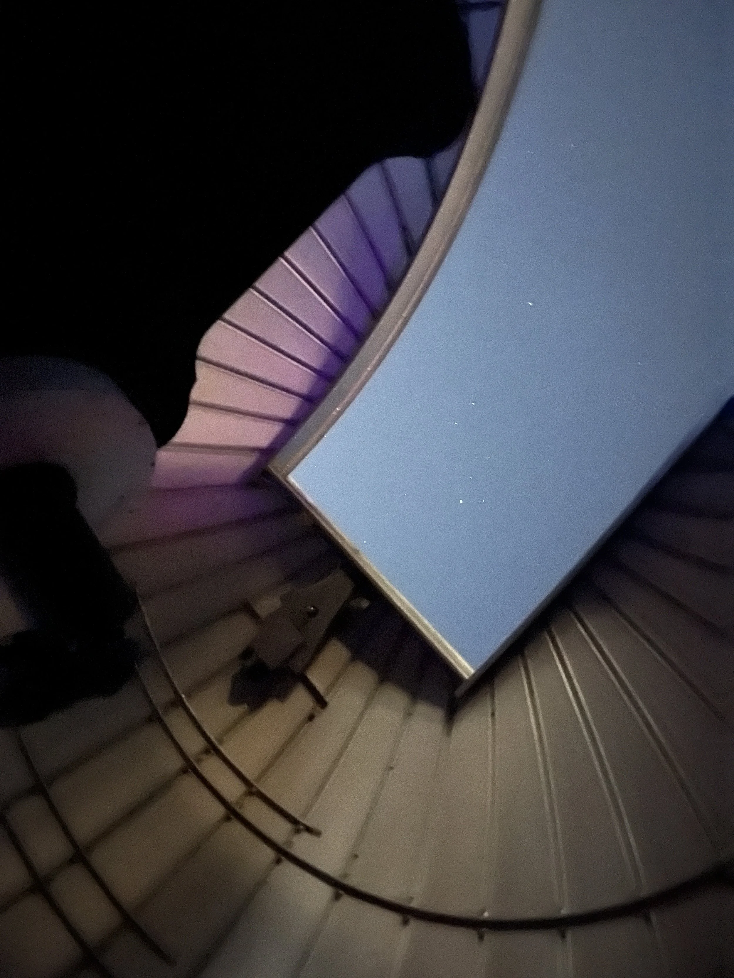 Another telescope was focused on the ring nebula. “Look to the side rather than directly at it,” advised the astronomer. “That brings more light into your eyes.”